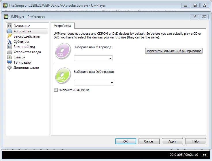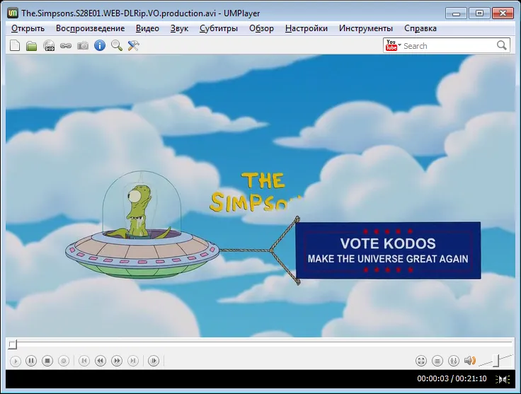 UMPlayer - мультимедиа проигрыватель, имеющий огромное количество вспомогательных возможностей и инструментов, более 270 встроенных кодеков и способного обрабатывать любые медиа форматы, воспроизводить аудио CD, DVD, (S) VCD, TV / Radio, YouTube и SHOUTcast потоки и даже неполные или поврежденные медиа файлы. Предоставляет списки популярных интернет-радиостанций и популярного видео на YouTube. Функции UMplayer:поддерживает такие форматы, как AAC, AC3, ASF, AVI, DIVX , FLV, H.263, MKV, MOV, MP3, MP4, MPEG, OGG, QT, RealMedia, VOB, Vorbis, WAV, WMA, WMV, XviD, а также аудио CD, DVD, VCD, TV и т.д.встроенная поддержка кодеков (270 штук)хорошо реализован поиск на Youtube и сохранение роликовподдержка субтитров (есть функция их поиска)синхронизации аудио / субтитровудобный эквалайзер видео и аудиоподдерживает скины CSSпростой и интуитивно понятный пользовательский интерфейснастраиваемые горячие клавишиподдержка IPv6снятие скриншотов